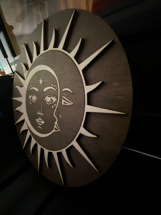 Rustic laser cut hand crafted boho sun moon wall decor art